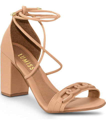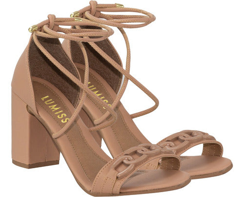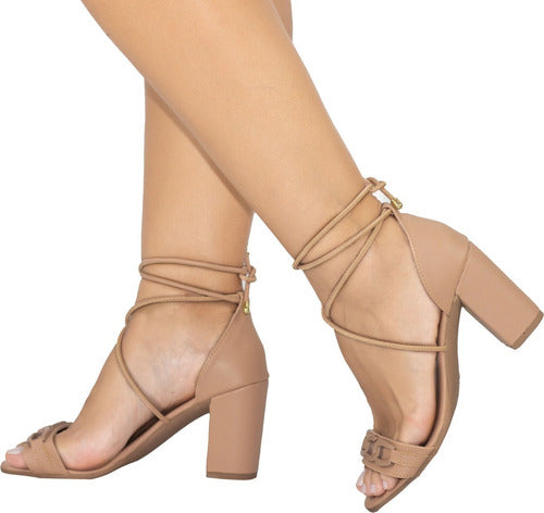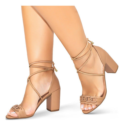 Sandalia Amarração Salto Grosso Alto Blogueira Moda Corrente