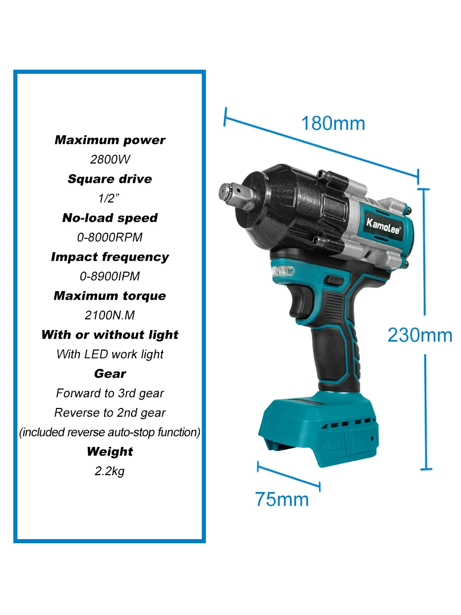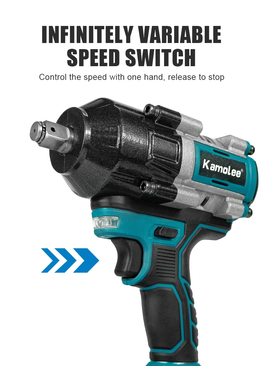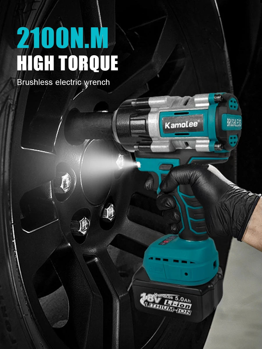 Chave de impacto elétrica sem fio Kamolee 2100 N.m de alto torque de 1/2 polegada sem escovas 18V-21V ferramenta de chave de bateria