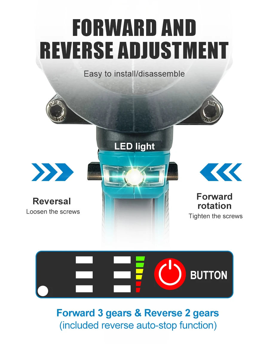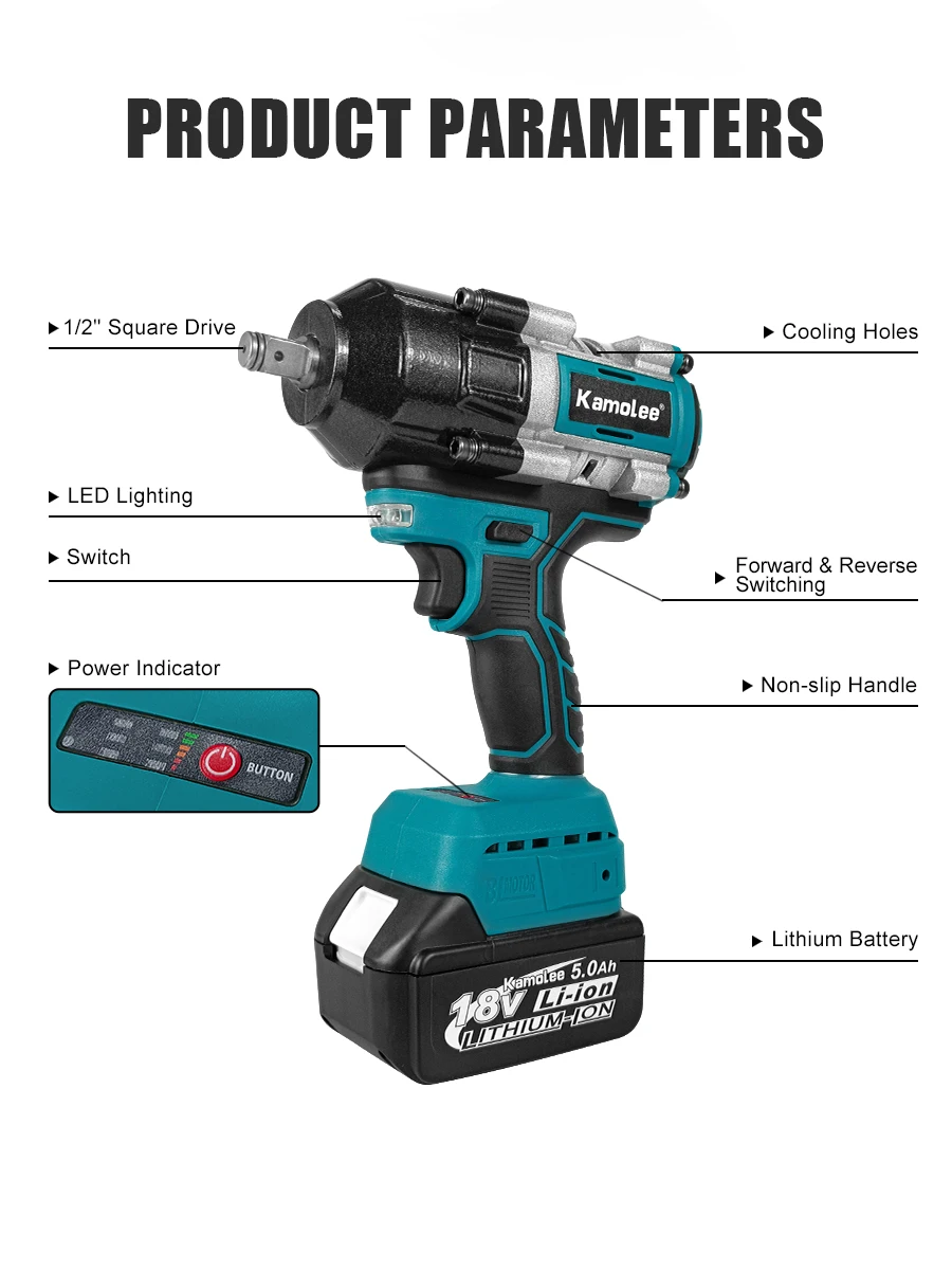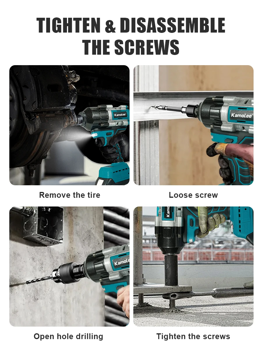 Chave de impacto elétrica sem fio Kamolee 2100 N.m de alto torque de 1/2 polegada sem escovas 18V-21V ferramenta de chave de bateria